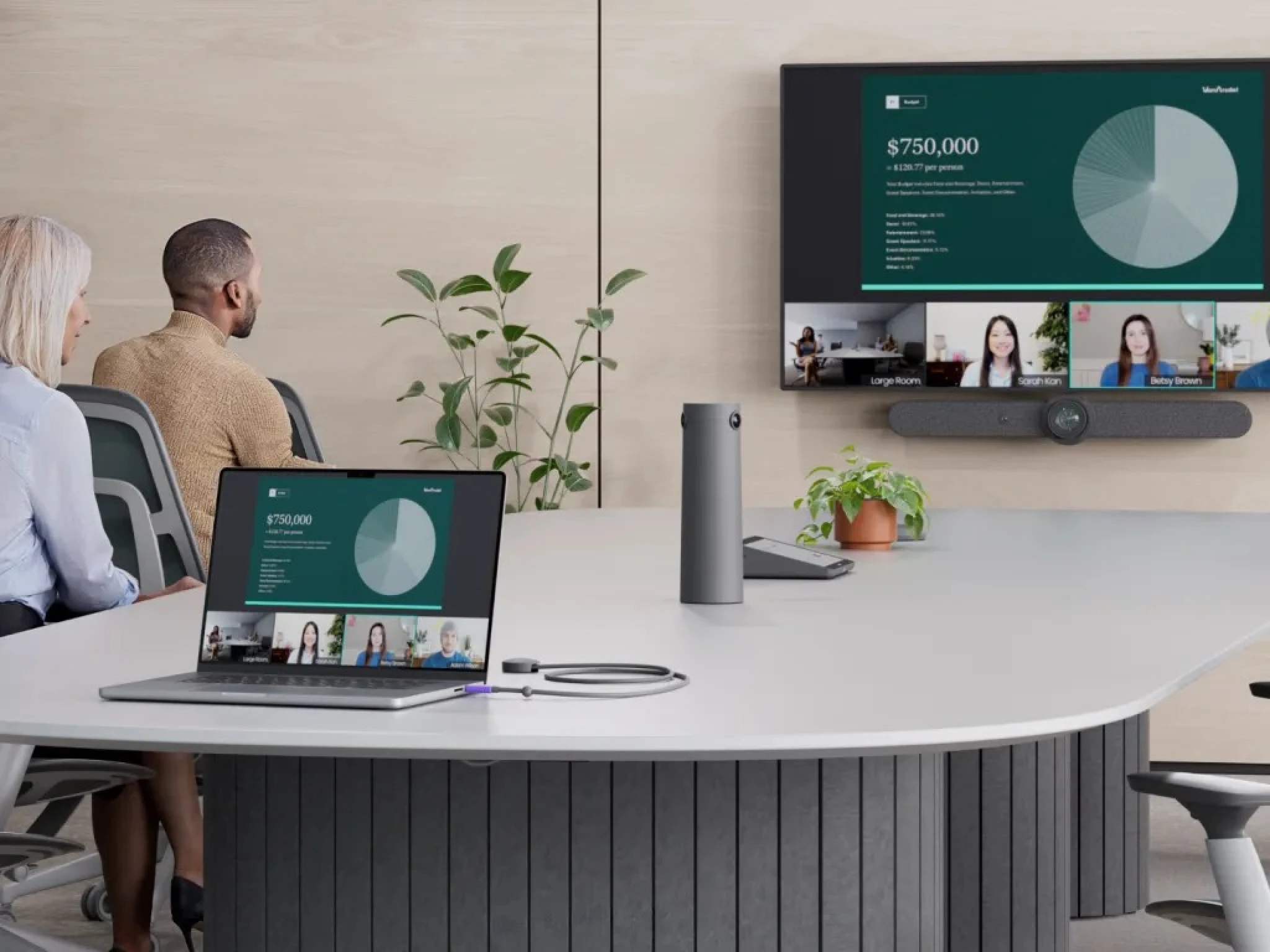 Камера для переговорної кімнати на базі штучного інтелекту, яка допомагає віддаленим учасникам відчувати себе так, ніби вони справді сидять за столом.